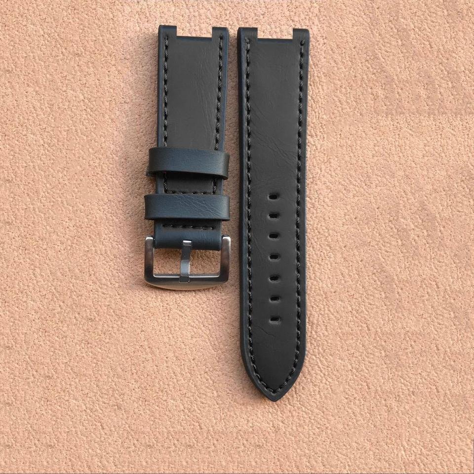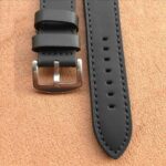 Black Leather Watch Strap with D-Shaped Groove / Classic Detail Design