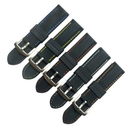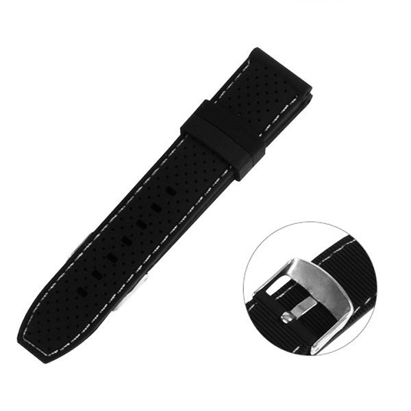 This silicone watch strap features a black base color