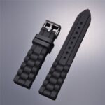 Black Casual Color Silicone Watch Strap / Block Pattern Watch Band