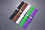 This silicone watch strap features vivid color tones and a three dimensional block pattern design.
