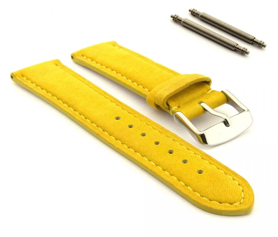 Yellow Leather Wrist Watch Strap / Band Strap Replacement Simple Daily Fashion