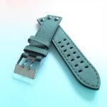 Green Perforated Watch Band / Vintage Strap with Cutout and Stud Accents