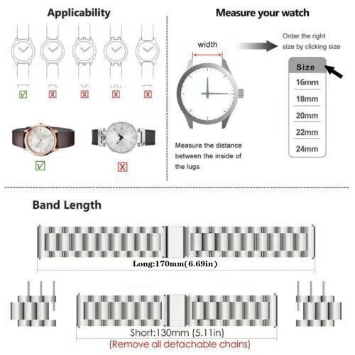 Random Delivery Metal Watch Band / Stainless Steel Strap, Classic Premium Style