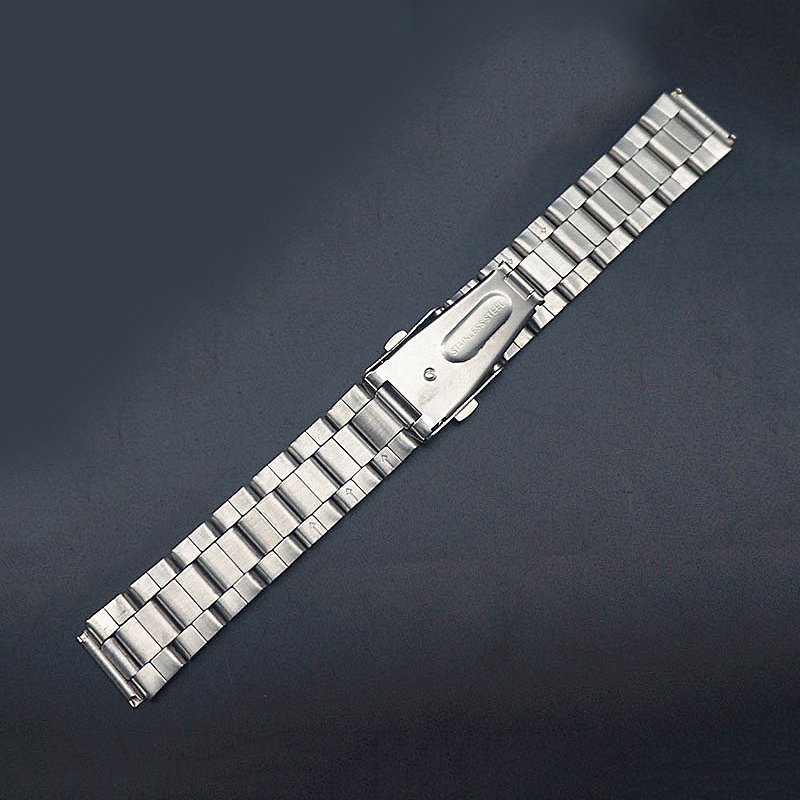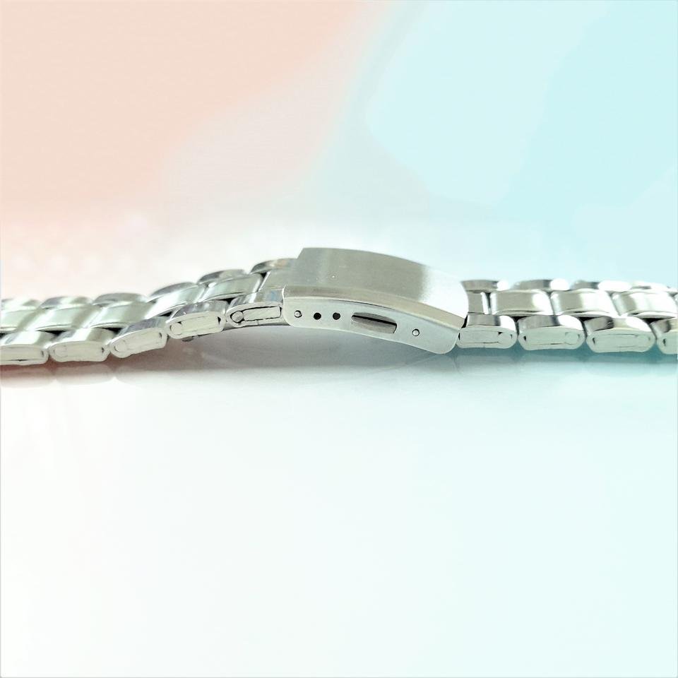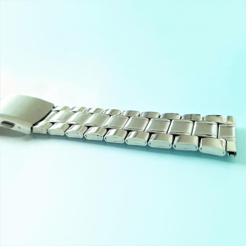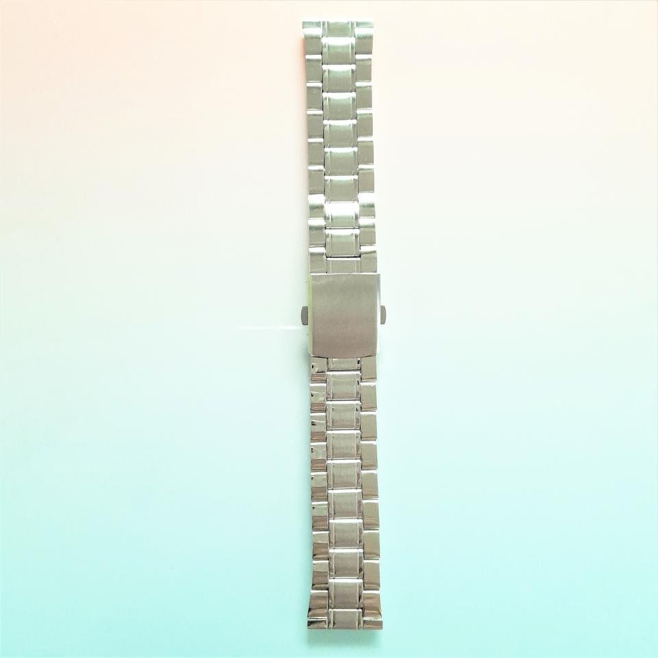 This is a stainless steel metal watch strap in a calm silver color.