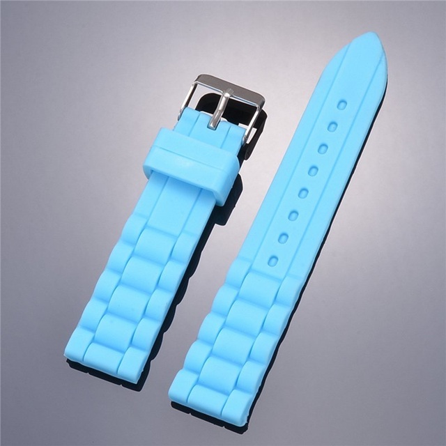 Sky Blue Casual Color Silicone Watch Strap / Block Pattern Watch Band