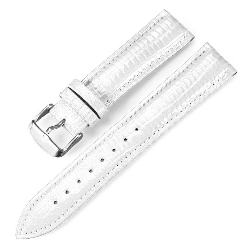 White Embossed Pattern Leather Watch Strap / Semi Round Cut Strap