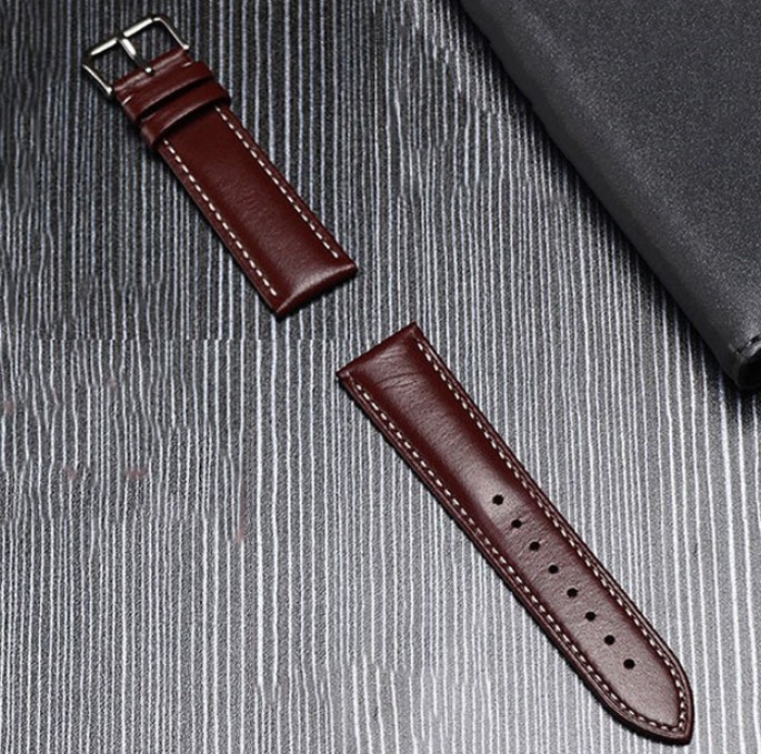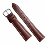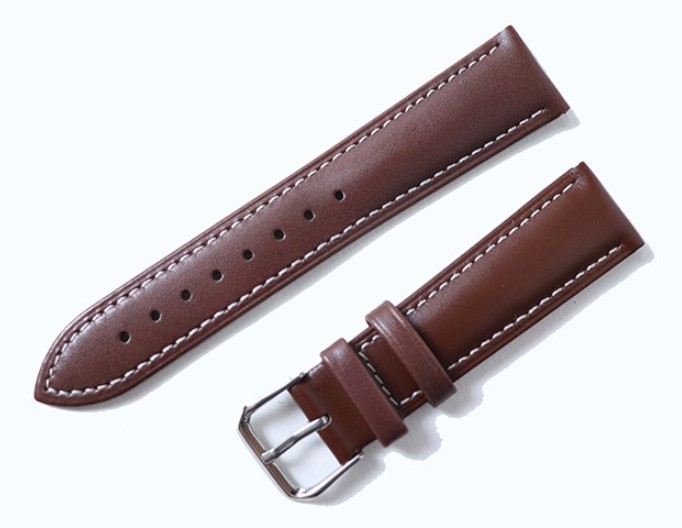 Brown Genuine Leather Watch Strap with White Stitching / Padded Stitch Daily Strap