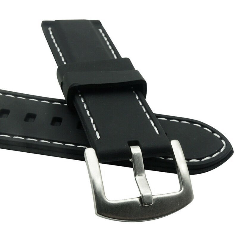 This silicone watch band strap features a simple design accented with stitch detailing.